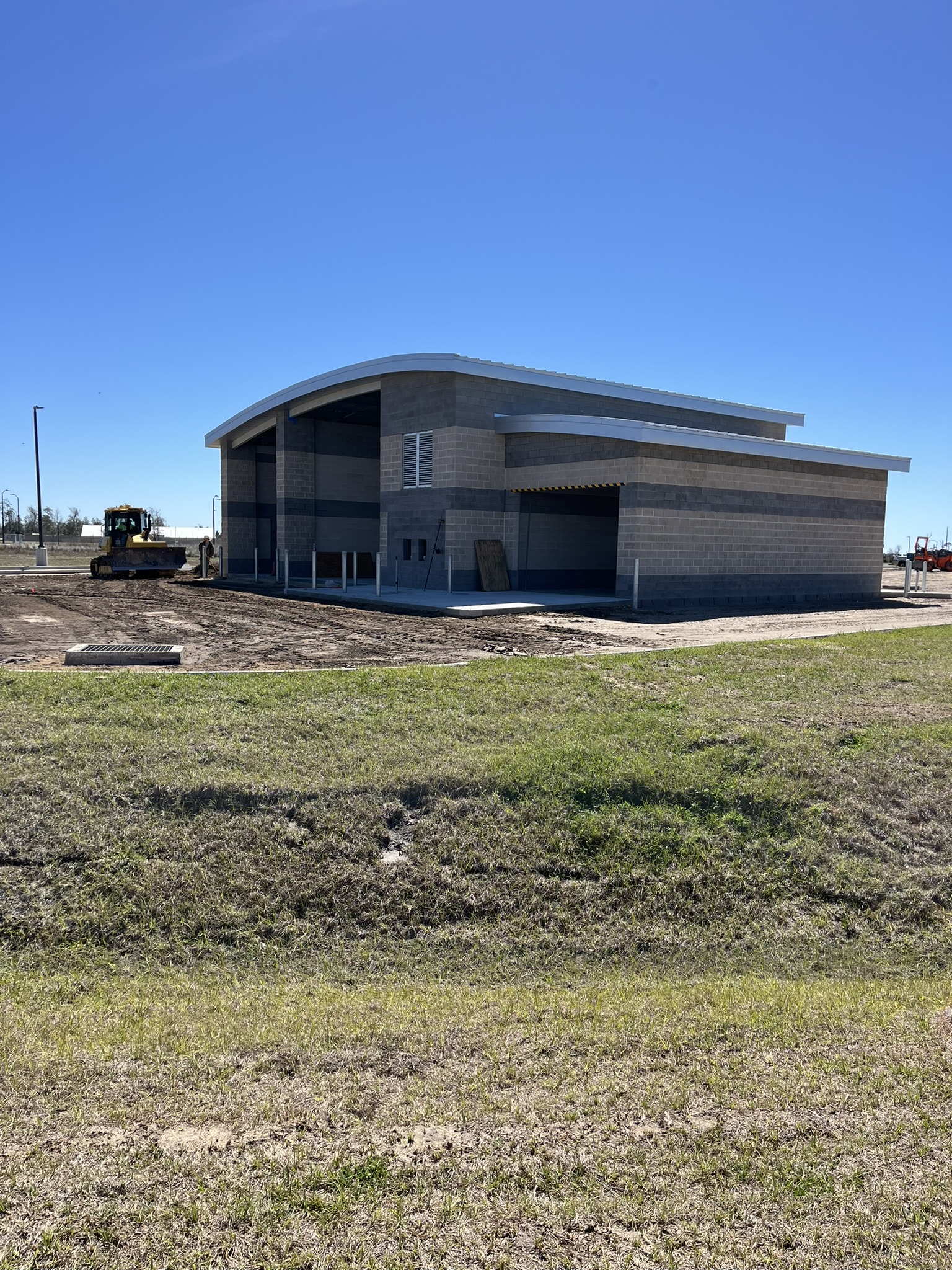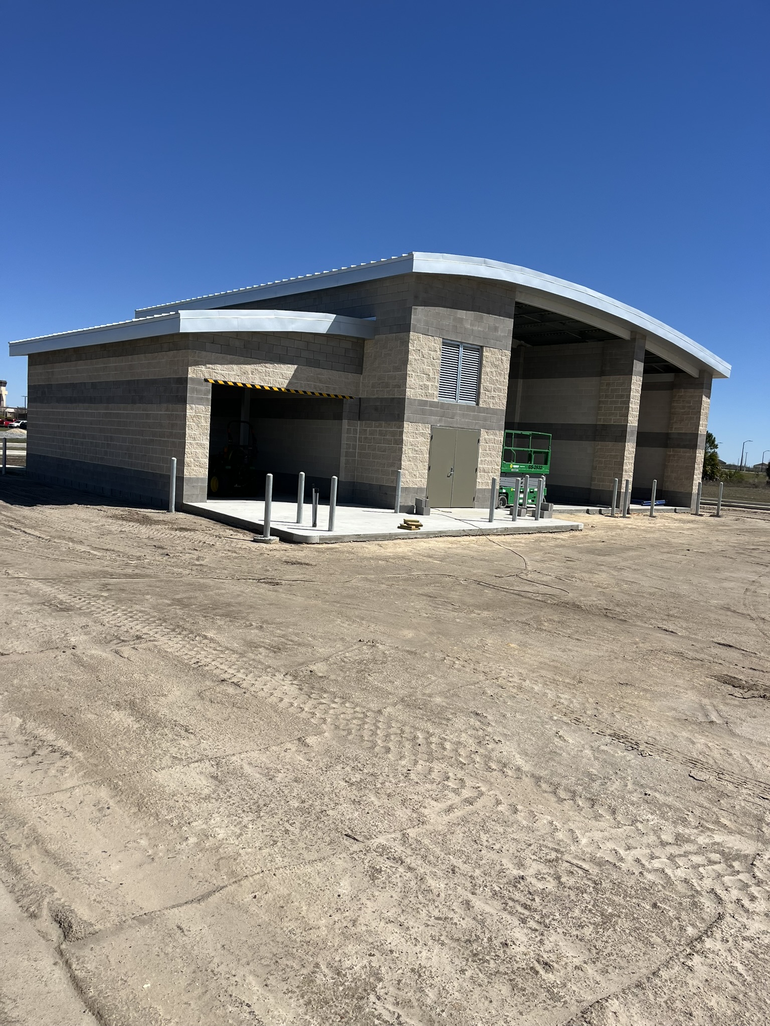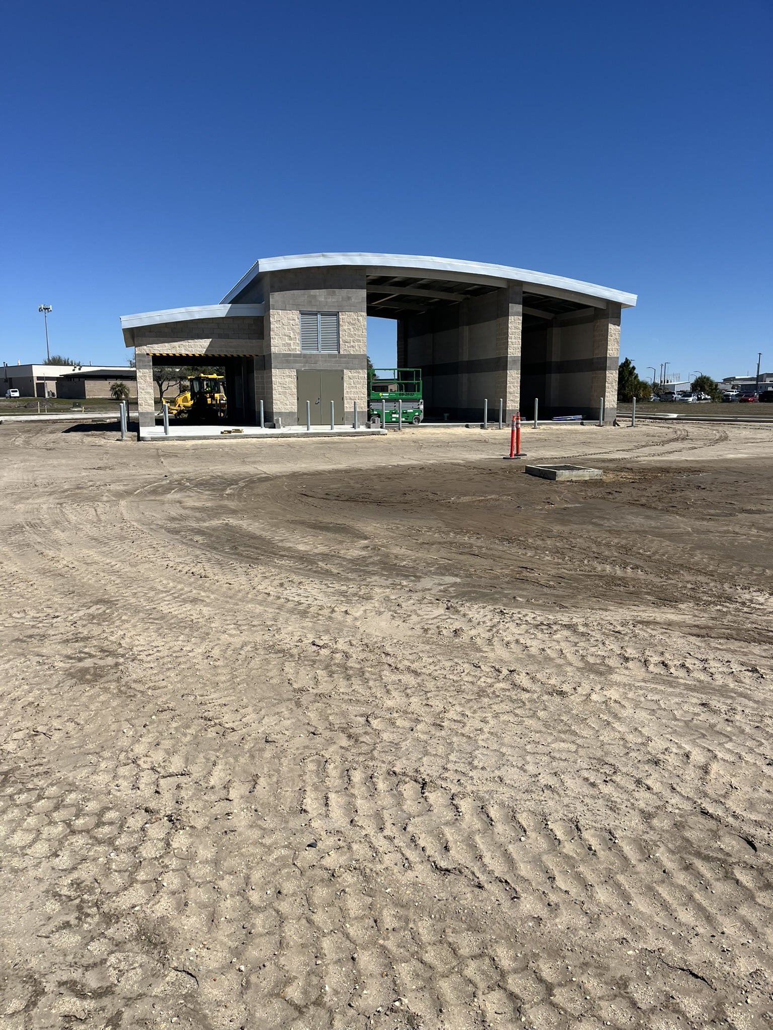 Ameristar designed and constructed a state-of-the-art automatic car wash facility at Tyndall Air Force Base, Florida, as part of the base’s post-hurricane reconstruction program. The project delivered a Category 5, hurricane-resistant structure engineered to withstand 165-mph winds, utilizing a reinforced concrete foundation, CMU load-bearing walls, and a curved standing-seam metal roof supported by a high-tensile steel frame.