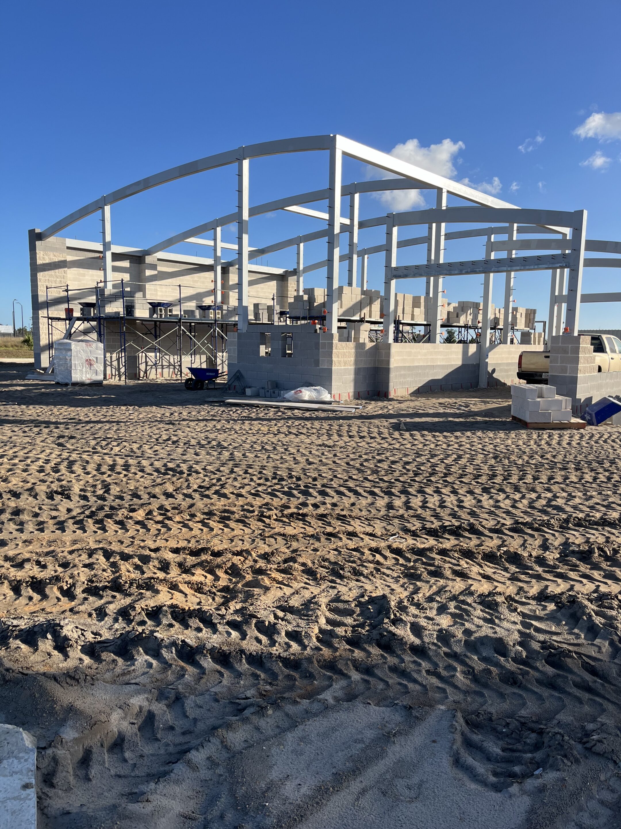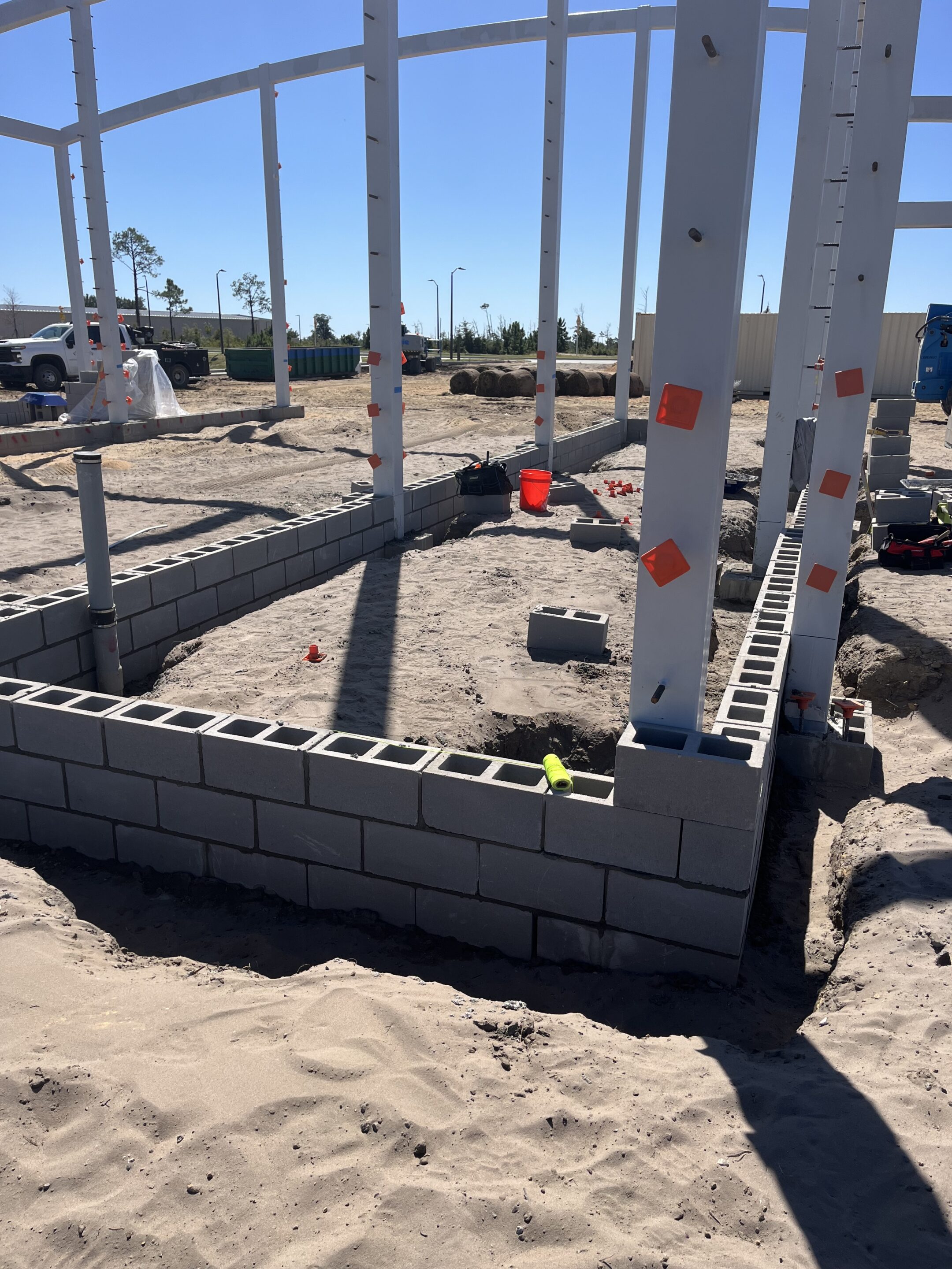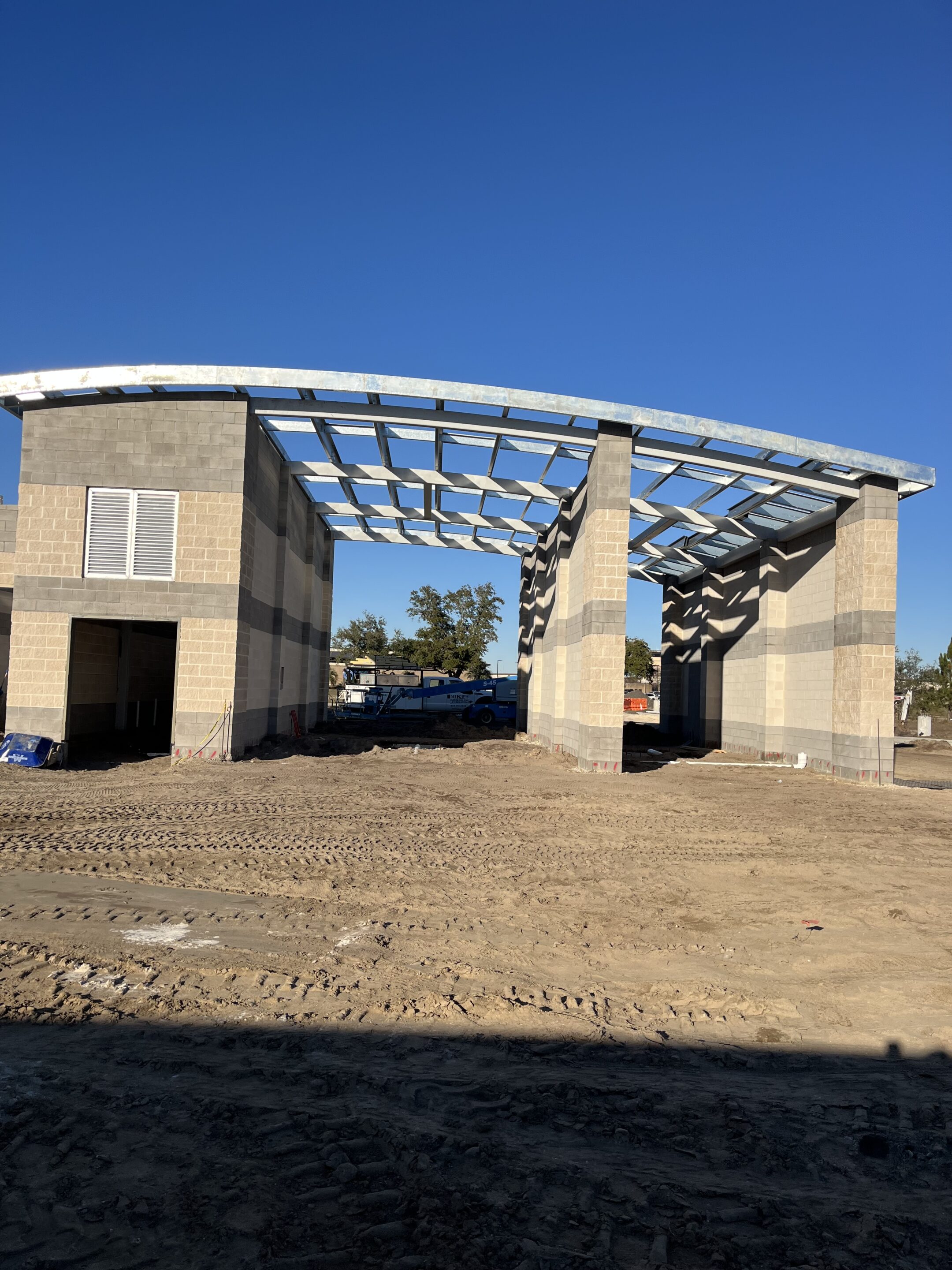 Ameristar designed and constructed a state-of-the-art automatic car wash facility at Tyndall Air Force Base, Florida, as part of the base’s post-hurricane reconstruction program. The project delivered a Category 5, hurricane-resistant structure engineered to withstand 165-mph winds, utilizing a reinforced concrete foundation, CMU load-bearing walls, and a curved standing-seam metal roof supported by a high-tensile steel frame.