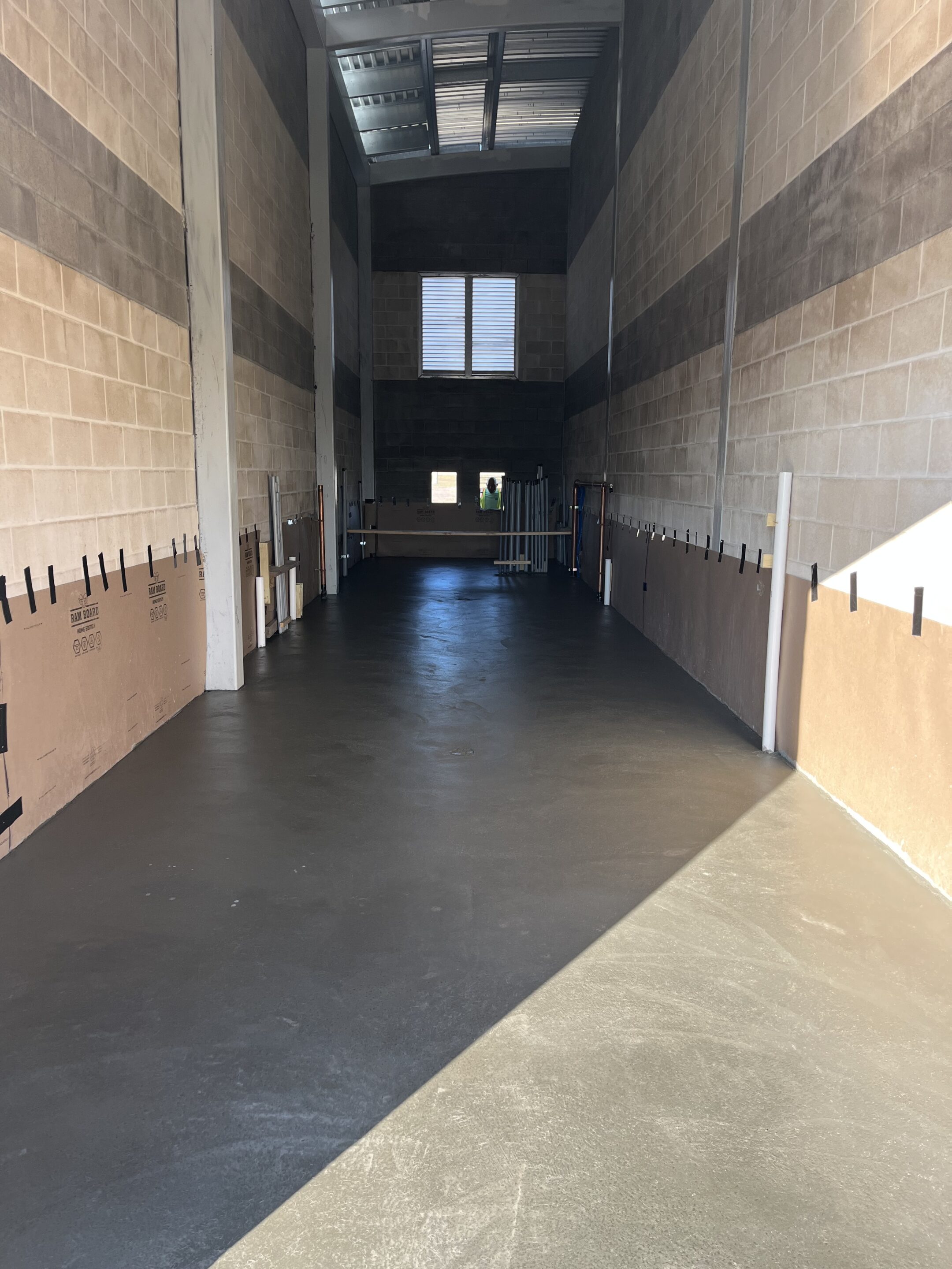 Ameristar also demolished the interior of the men’s and woman’s bathrooms in this facility and applied the same easy to clean impact resistant system to the walls, new acoustical ceiling systems and composite bathroom partitions. The client elected to retain the existing rubber sports tile flooring in the locker and bathrooms.